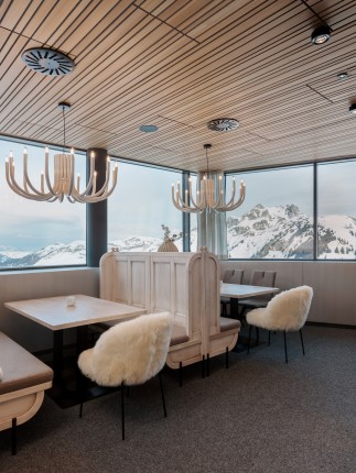 Idea di interni per un nuovo rifugio presso la stazione a monte di Kieserlbahn in Großarl.